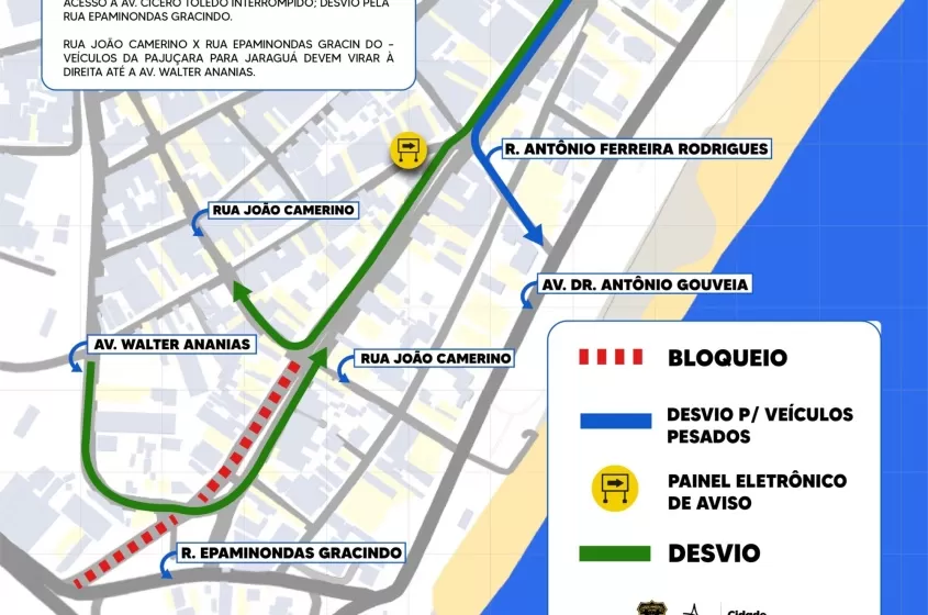 Obra altera trânsito da Pajuçara e Jaraguá nesta quinta (14)