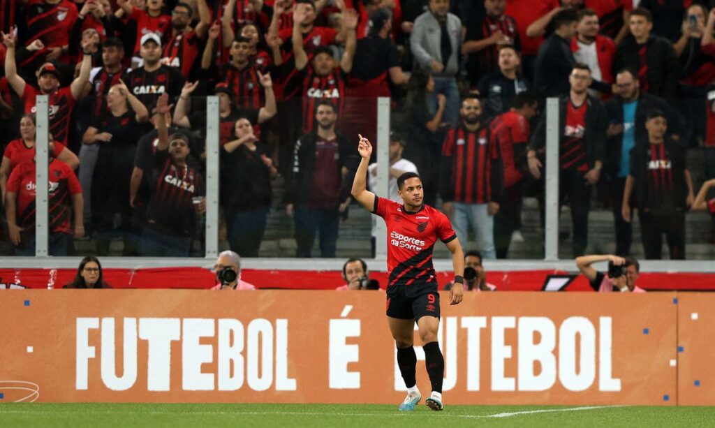 Empurrado por sua torcida, o Athletico-PR não demorou a ficar em vantagem no marcador. Aos seis minutos Vitor Roque recebeu a bola na intermediária. Logo no domínio o centroavante de 18 anos se livrou da marcação de um adversário e partiu em velocidade para abrir espaço e bater cruzado para marcar um belo gol.