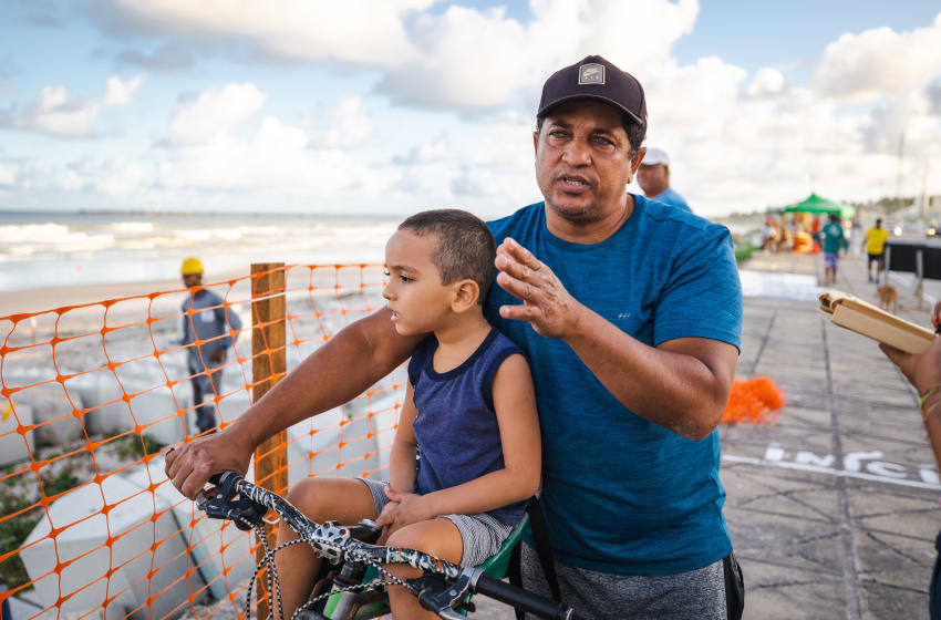Além de usar a Praia do Sobral como rota para o trabalho, Almeida também vai ao local para passear com a família. “Venho com meu filho aqui de bicicleta para ele ver a praia e, realmente, esta obra vai ser ótima para todo mundo que passa por aqui”, acrescentou o servidor público.