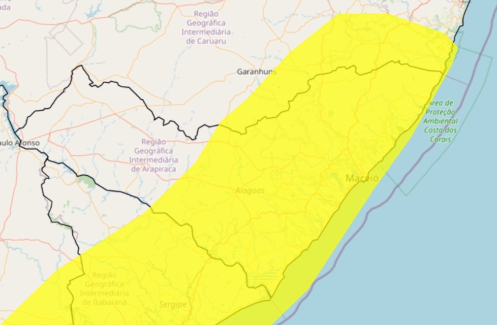 O alerta emitiu pelo Instituto Nacional de Meteorologia (Inmet) foi renovado para 80 municípios do estado de Alagoas nesta quarta-feira (21). Mais uma vez, o alerta tem validade de 24h, deixando a população em atenção até às 10h da quinta-feira (22).