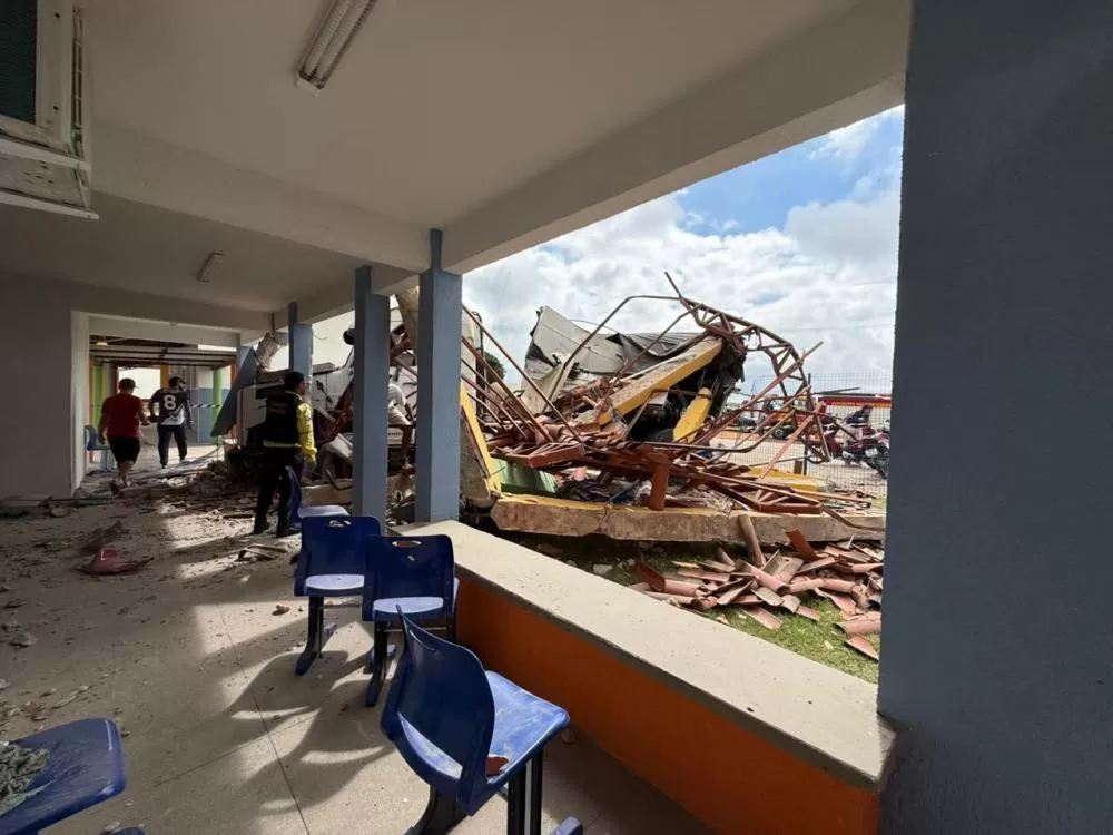 Pelas imagens é possível ver que o caminhão destruiu uma das fachadas da escola. O veículo também colidiu com quatro motocicletas que estavam estacionadas, além do carro de um dos professores da unidade. Os danos foram apenas materiais.